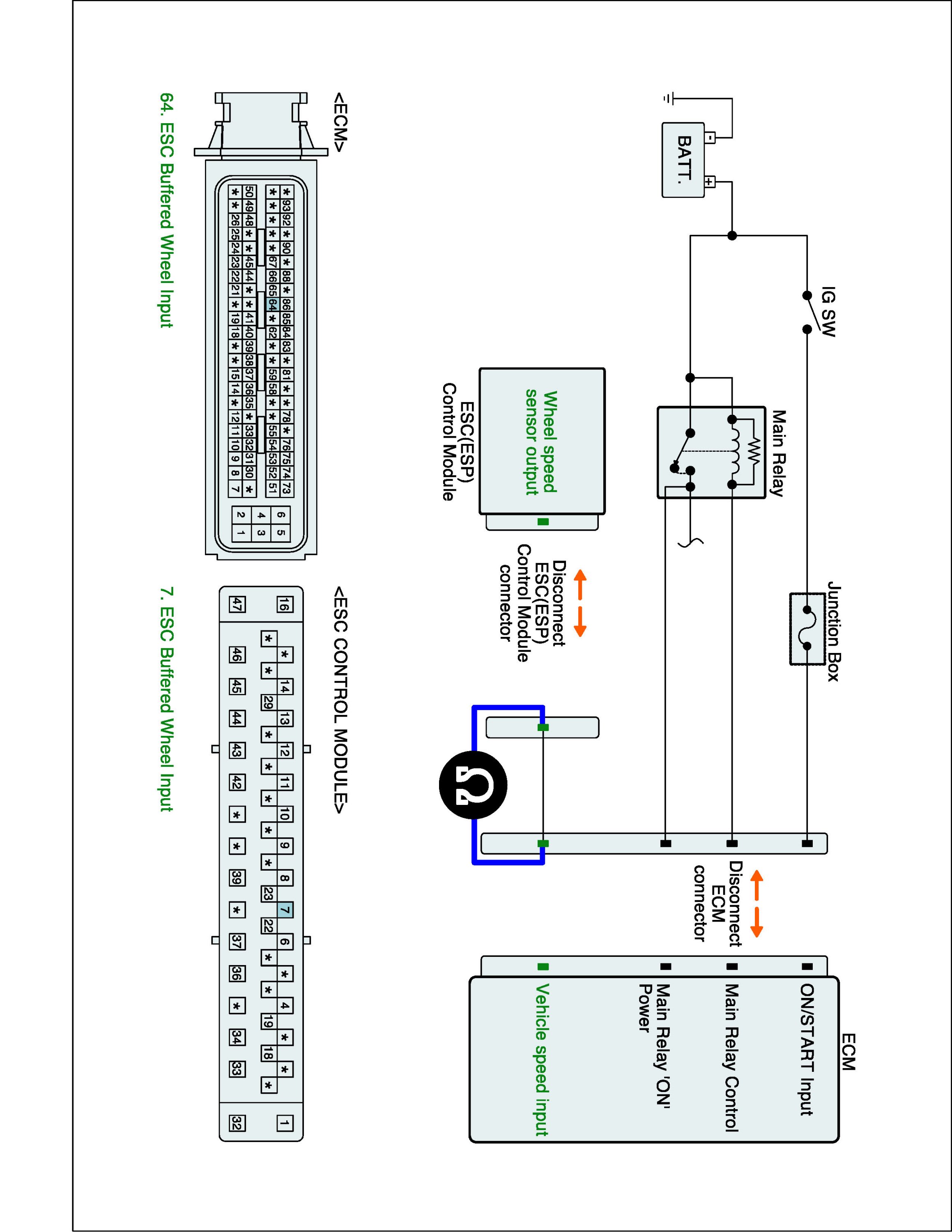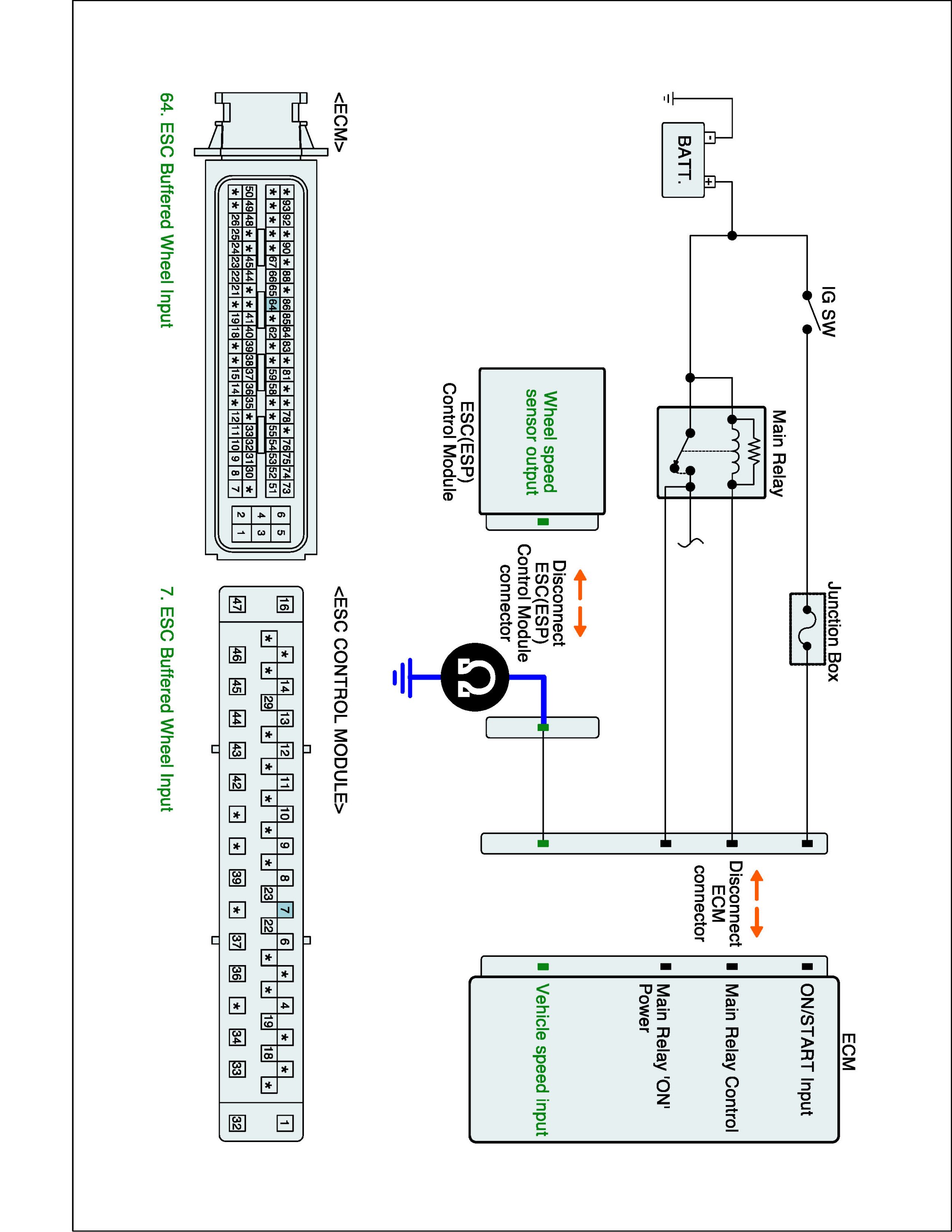 1. IG "OFF" and disconnect ECM connector and ESC (ESP) control module connector.