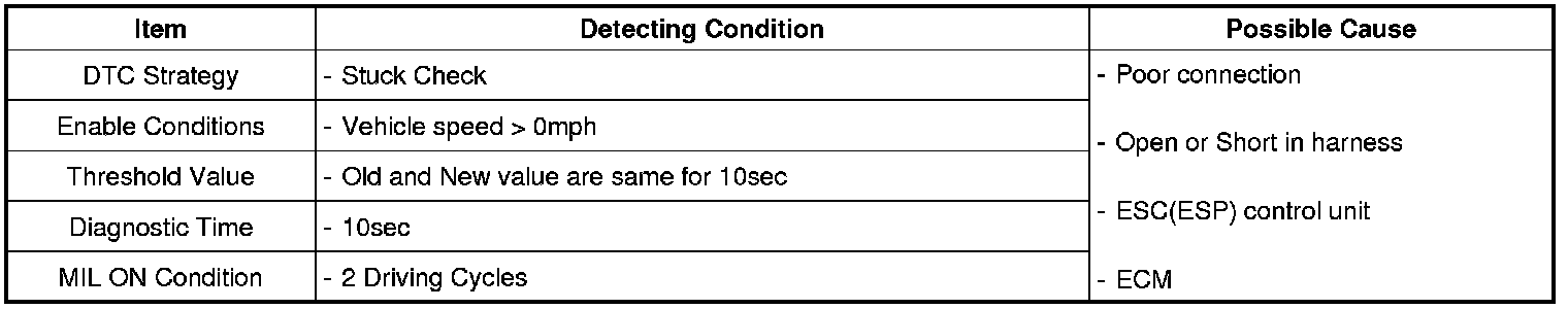 If there is no change of vehicle speed signal over 10 sec under driving, ECM sets P0502.