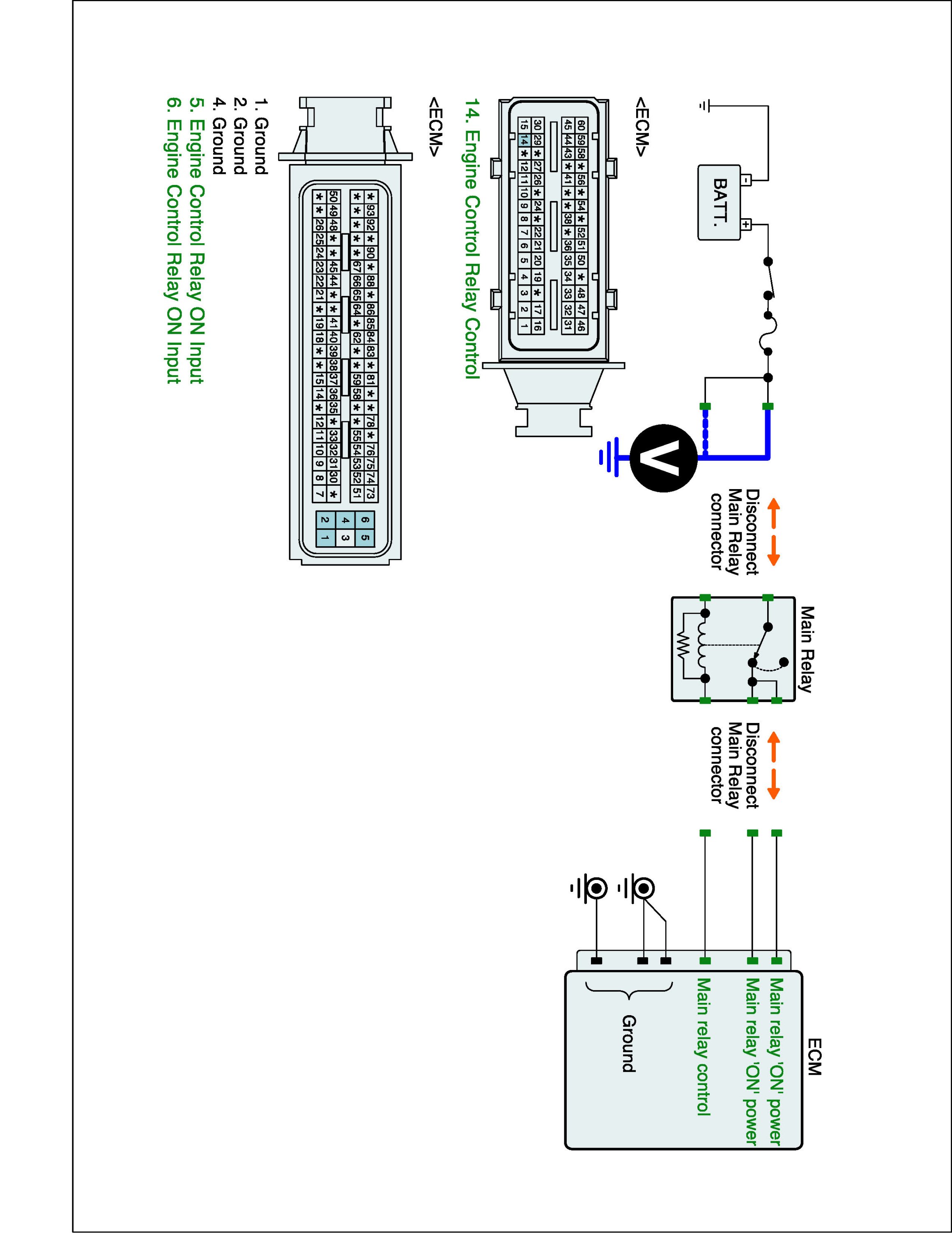 2. Measure the voltage between main relay 'ON' power terminals of ECM harness terminal and chassis ground.