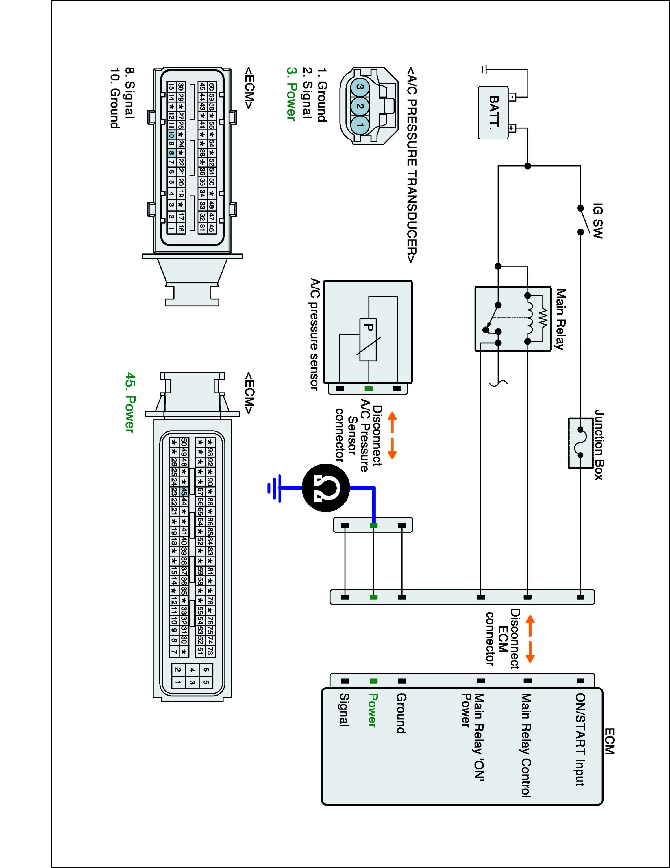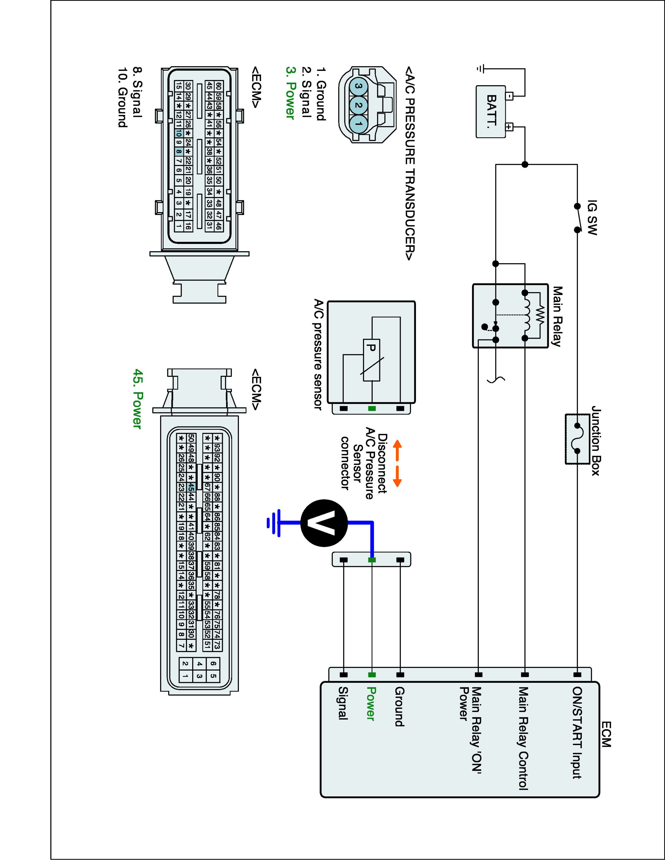 1. IG "OFF" and disconnect A/C Refrigerant Pressure Sensor, Fuel Tank Pressure Sensor connector.