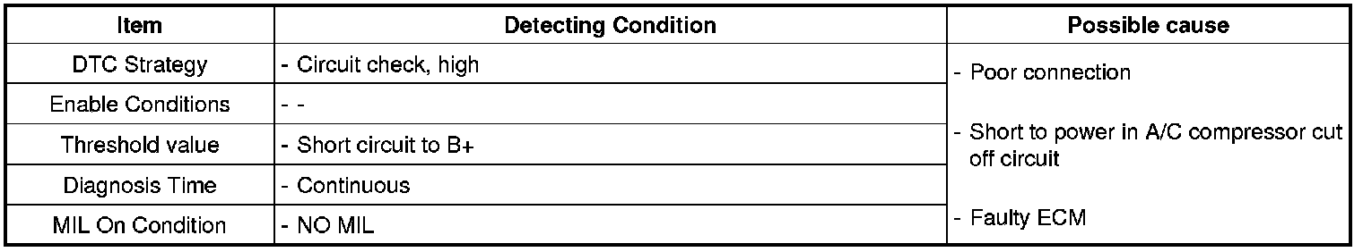 If there is Short to Battery in A/C compressor cut off circuit, ECM sets DTC P0647.