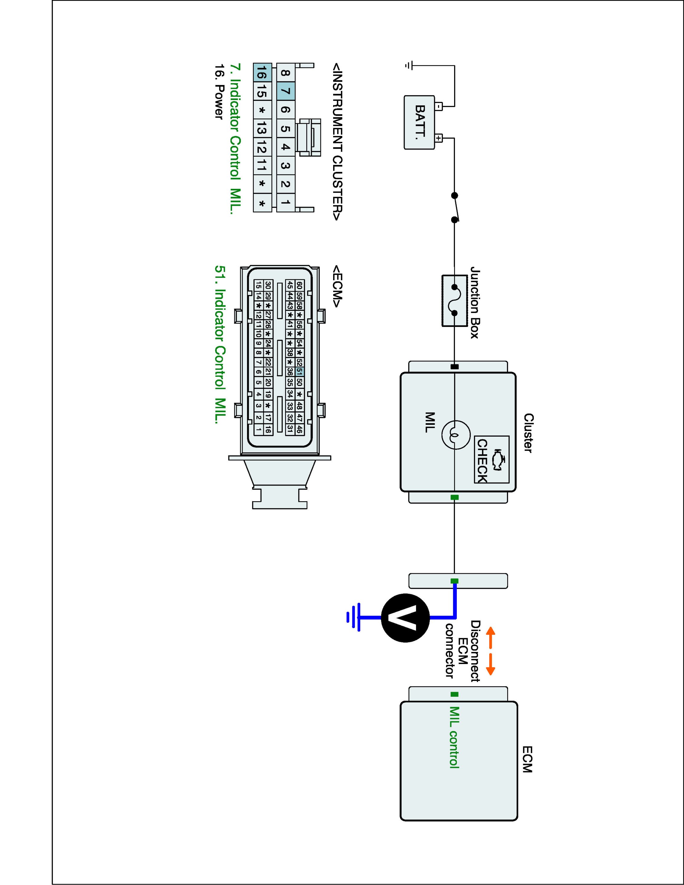 3. Measure voltage between MIL terminal of ECM harness connector and chassis ground.