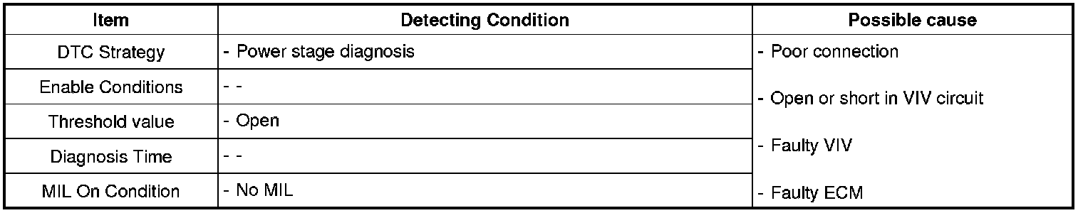 If there is Open in VIV circuit, ECM sets DTC P0660.