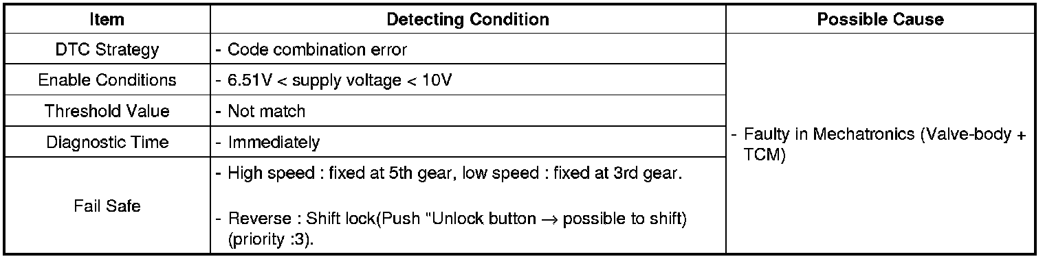TCM set this code If detected ground short for IC circuit of Inhibitor s/w. (MIL ON : 2 driving Cycle)