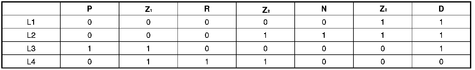 Conversion of linear shift valve or parking lock movement into a parallel coded signal on 4 wires (L1, L2, L3, L4) in accordance with the position P, R, N, D, 3, 2, and P_on and P_off (parking lock engaged/disengaged).