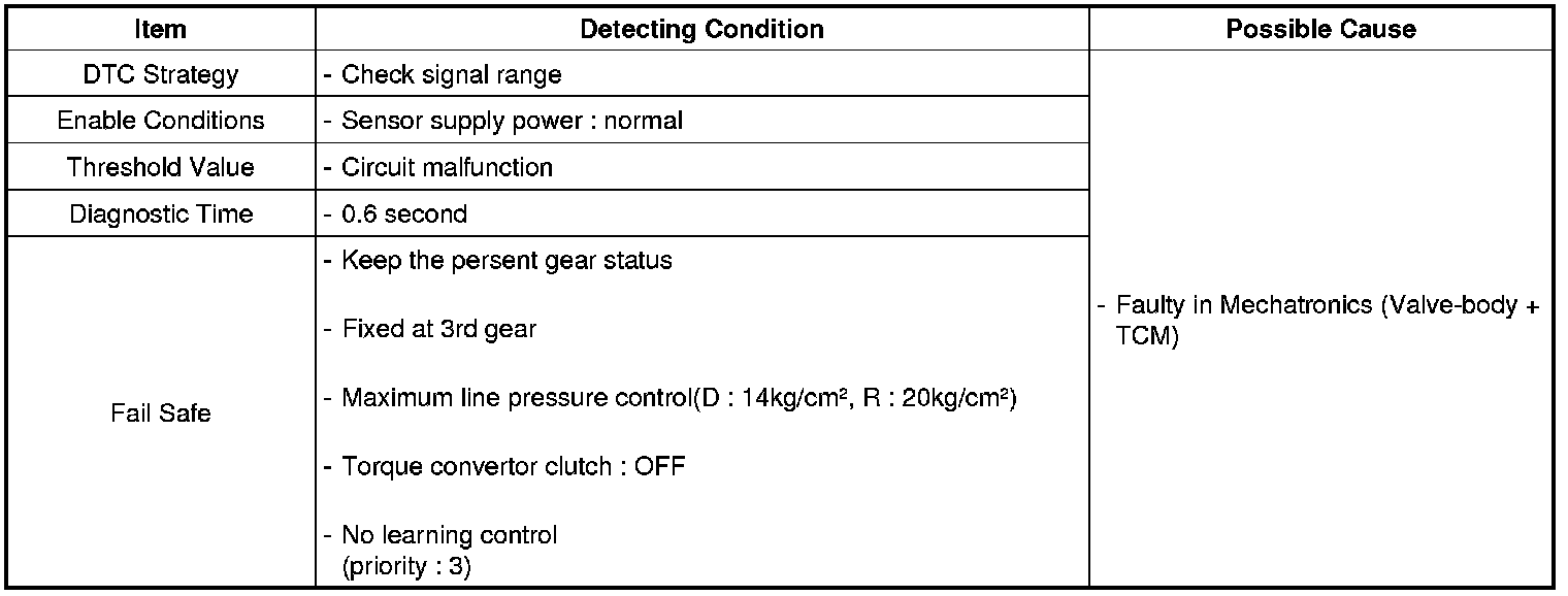 TCM set this code If detected short to battery, open, short to ground in this circuit. (MIL ON : 2 driving Cycle)