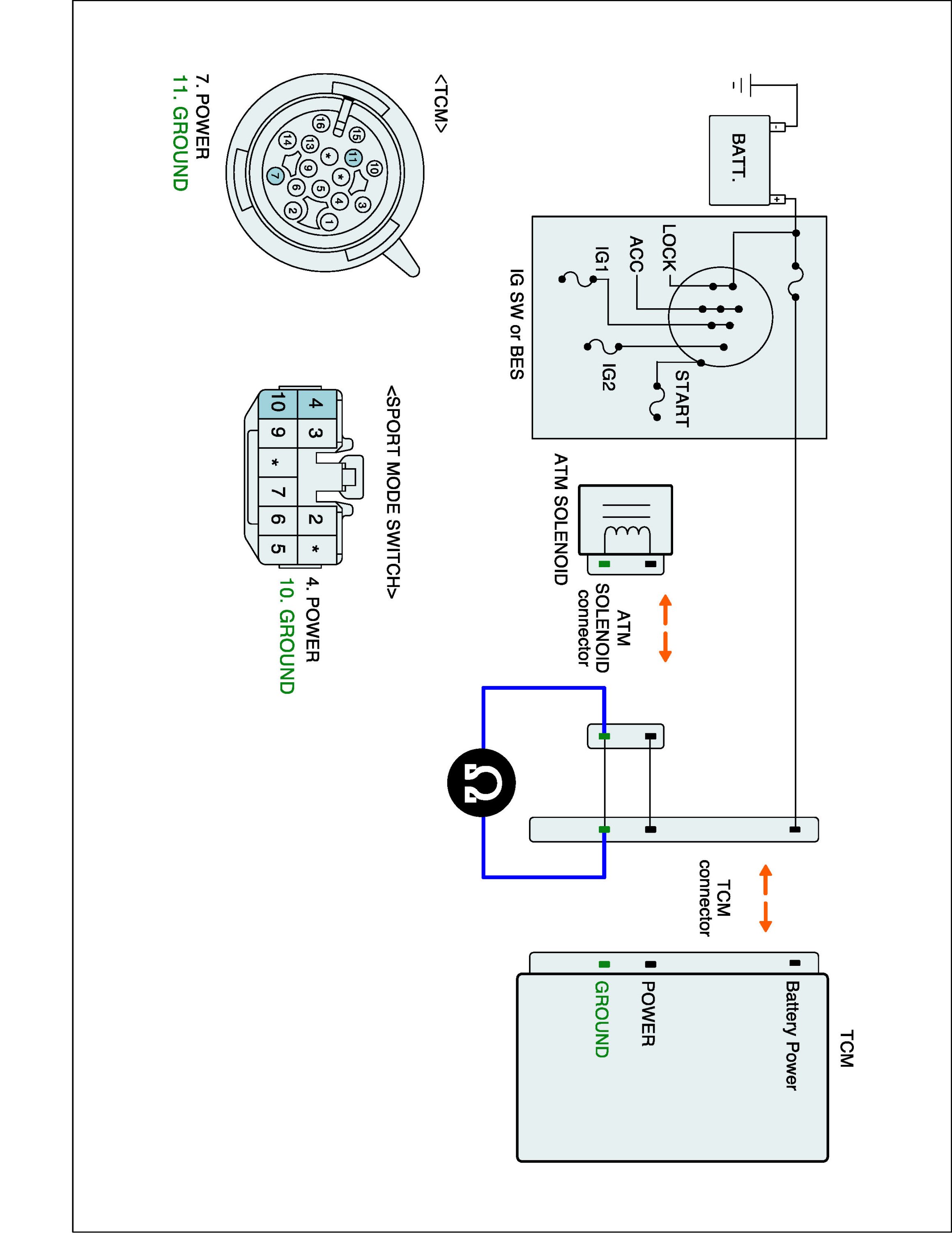 2. Disconnect the "ATM SOLENOID" and TCM connector.