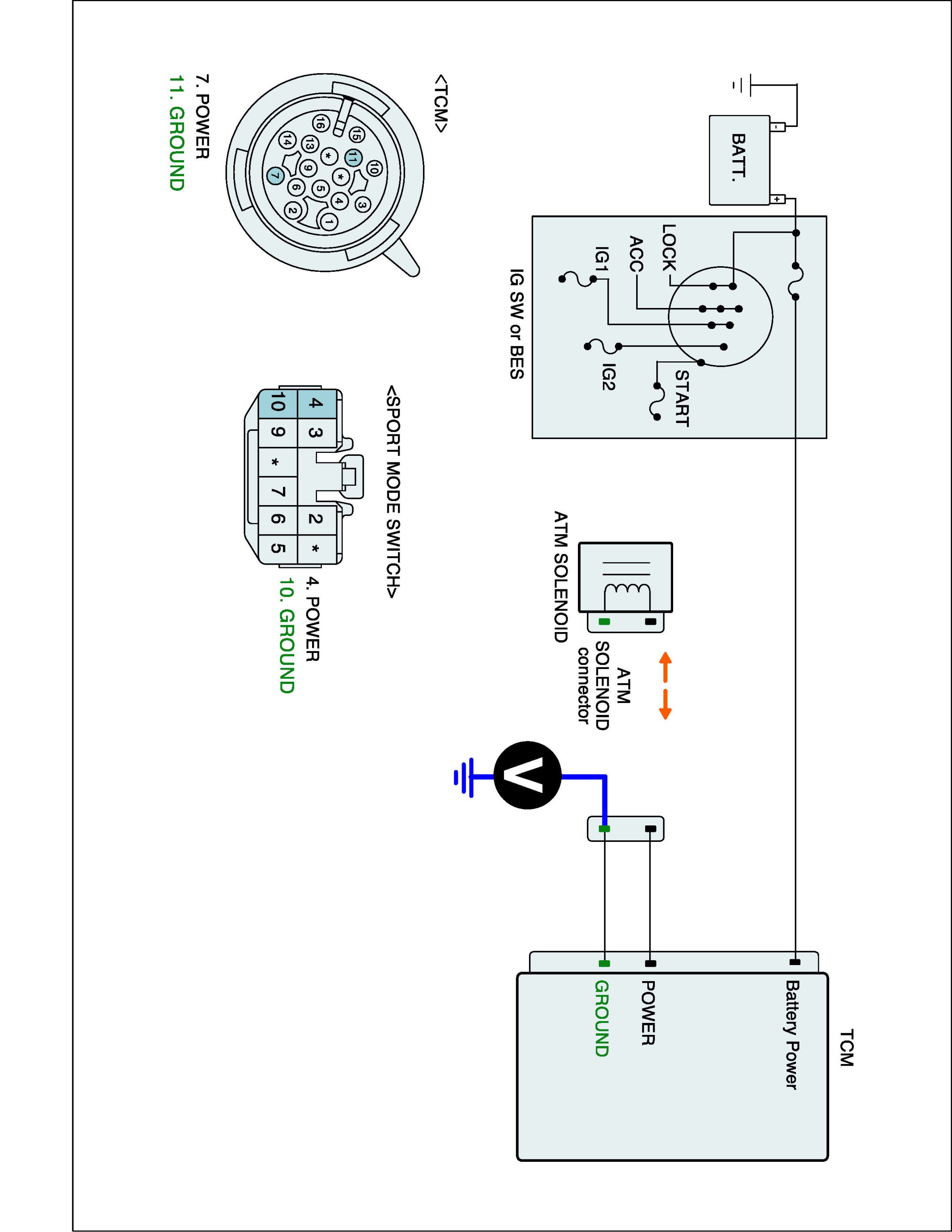 2. Disconnect the "ATM SOLENOID" and TCM connector.