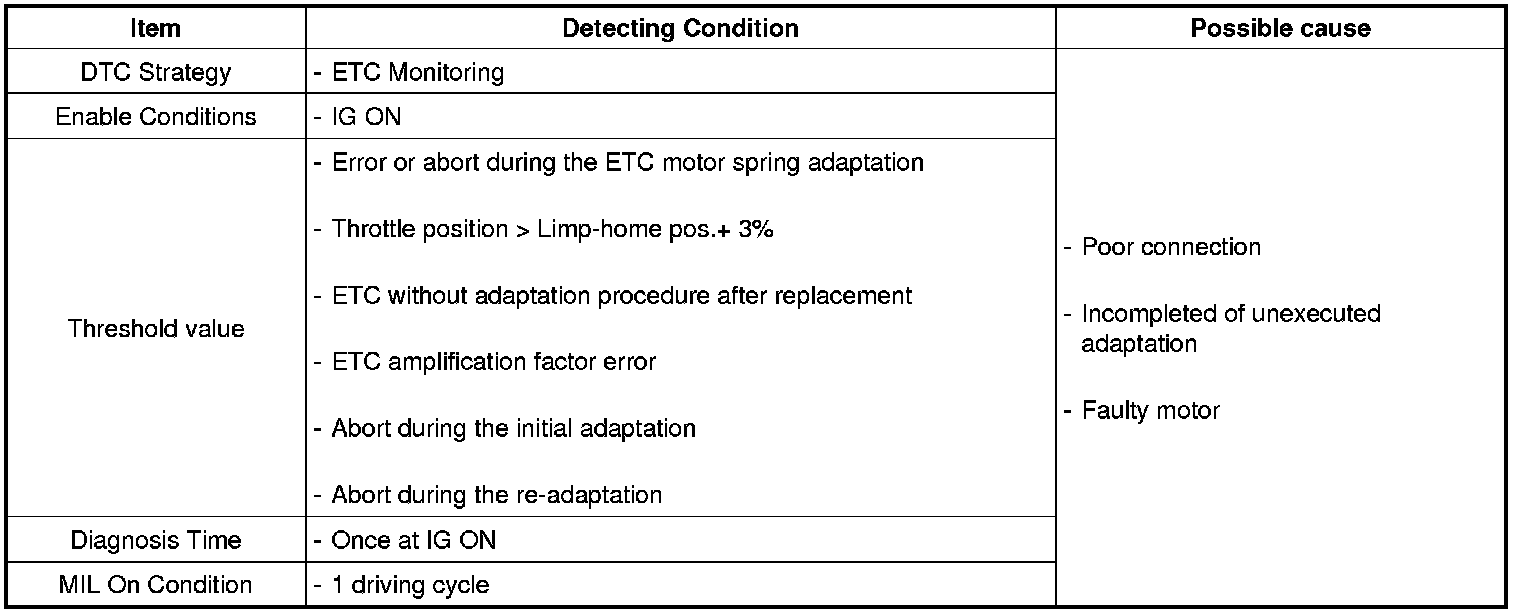 In case an error happens during ETC motor spring adaptation or TPS spring is out of order, ECM sets P2119.