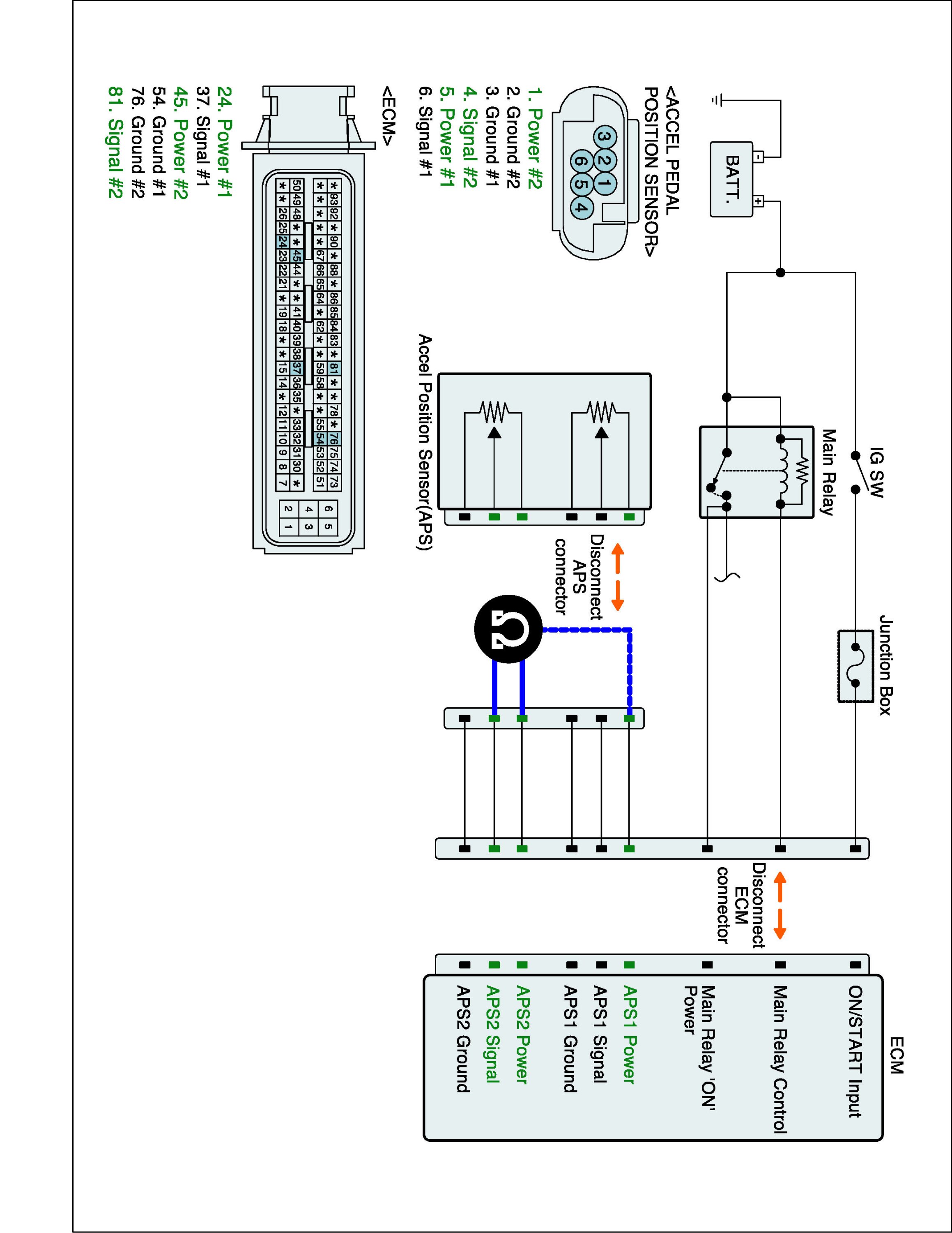 1. IG "OFF" and disconnect APS connector and ECM connector.