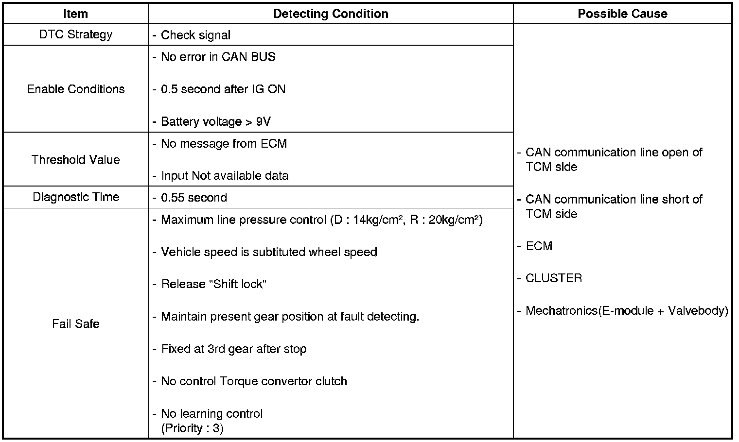 TCM set this code If not receive CAN message form ECM. (MIL OFF)