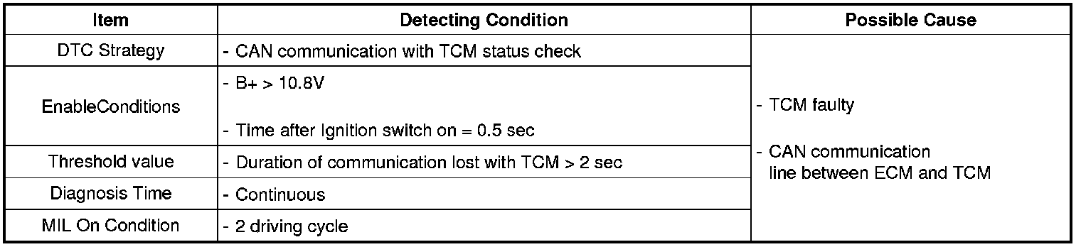 Checking CAN communication, under detecting condition, if an CAN communication error between ECM and TCM is detected. ECM sets U0101.