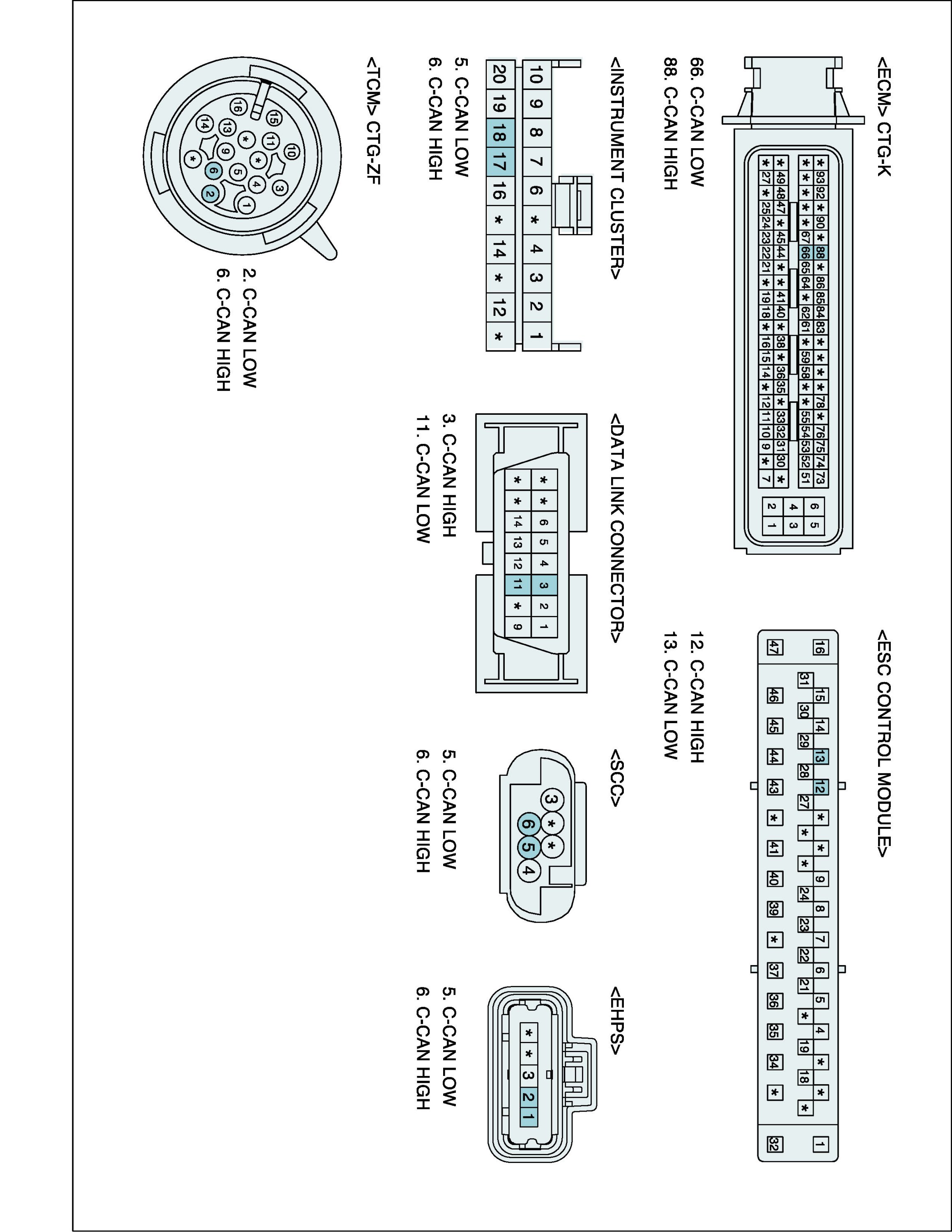 Several control units are applied to electronically controlled vehicles. These units perform each control with informations from various sensors. Thus, sharing signal information from sensors is needed, so CAN communication type whose communication speed is high and insensitive to electrical noise by spark generation is adopted to controlling power-train (TCM, ECM, CLUSTER, Vdc, 4WD, EAS, SAS, EPS)