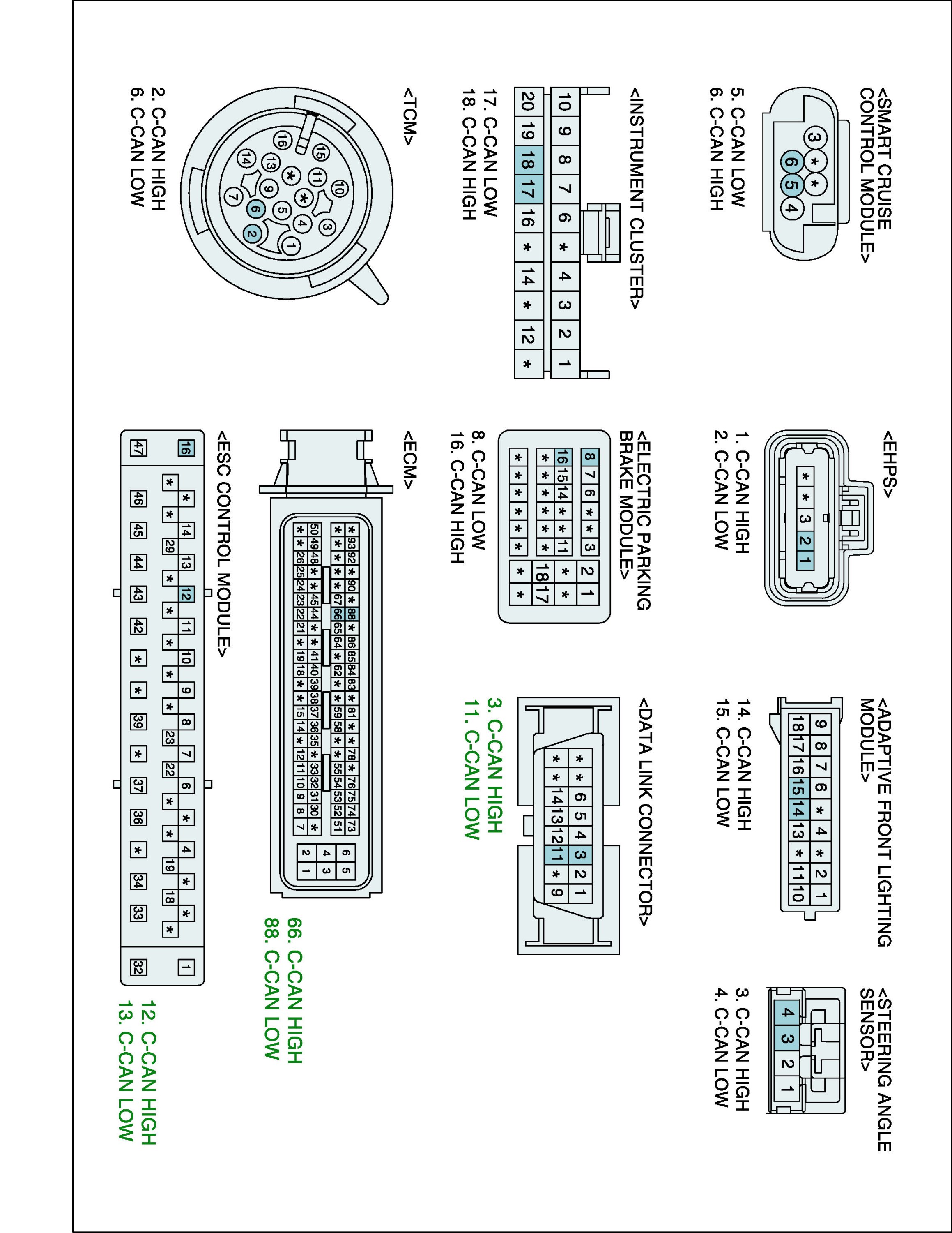 2. Check resistance between CAN-HIGH terminal of ECM harness Connector and CAN-HIGH terminal of TCS harness connector.