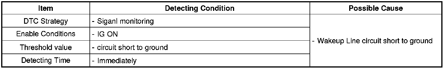 This code is set when Head unit detects wake up line circuit short to ground.