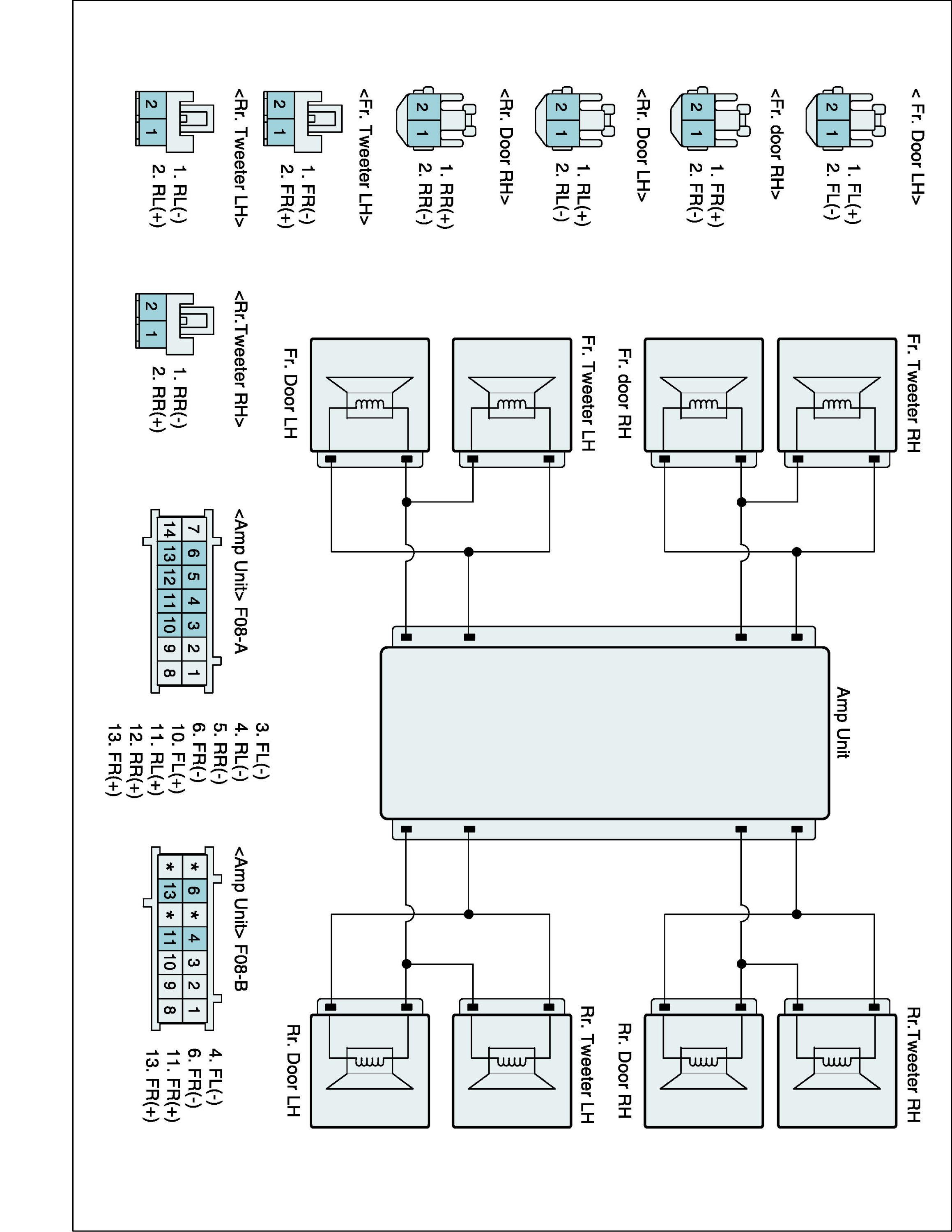 The Power Tuner will be applied to domestic, China and general markets. It has some functions like below1. Speech signal transmission by Most communication 2. FM/AM Tuner and Power Amplifier Combined 3. Embedded FM double tuner 4. Antenna diversity function applied for improvement in reception 5. 11 channel audio amplifier (Logic 7). The speaker is installed at front in-panel (sensor speaker), each 4 doors, center deck (sub woofer) and each side of deck like above.