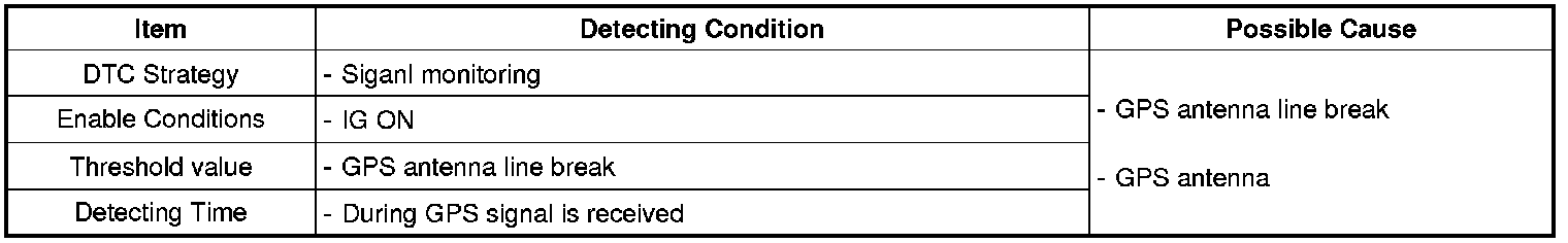 This code is set when Head unit detects the line break of GPS antenna while receiving GPS signal.