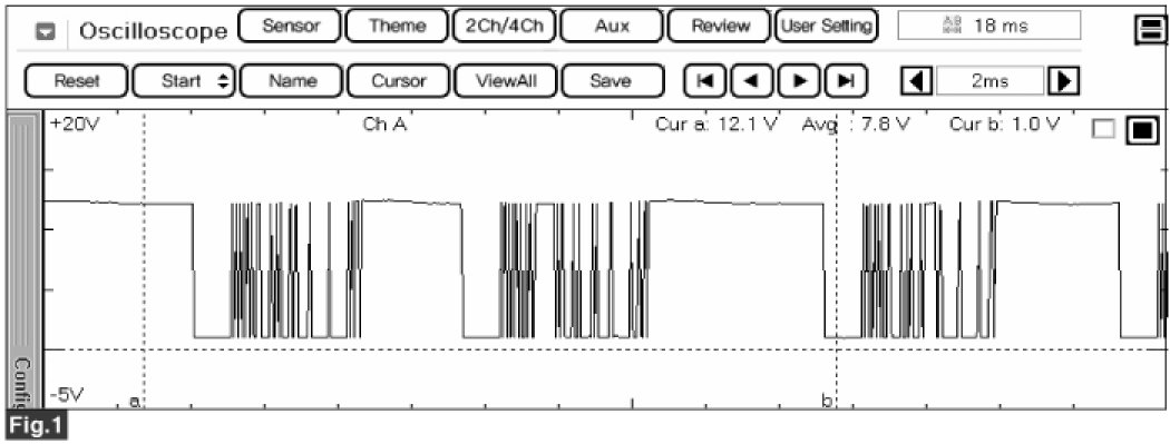 FIG. 1) Measured waveform at the TCLK+ terminal connected between Head Unit and front Monitor