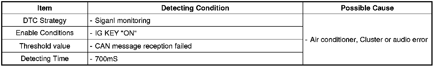 This code is set when there is no response from the Air-conditioner, Cluster and Audio system on the MM CAN communication system.