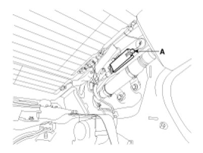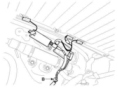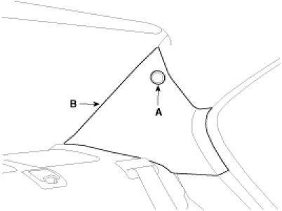 1. Remove the rear pillar trim (B) after removing the bolt in the cap (A).