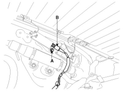 2. Touch one tester probe to the glass antenna terminal (A) hear, and move the other tester probe along the antenna wires to check that continuity exists.
