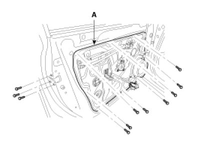 4. Loosen the door module mounting bolts, then remove the door module (A).