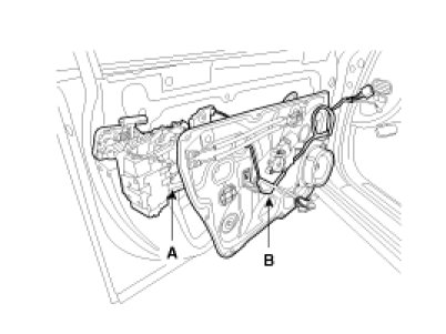5. Disconnect the door module wiring harness (B), remove the module assembly.