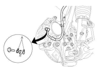 4. Disconnect the brake hose (A) from the brake caliper by loosening the bolt.