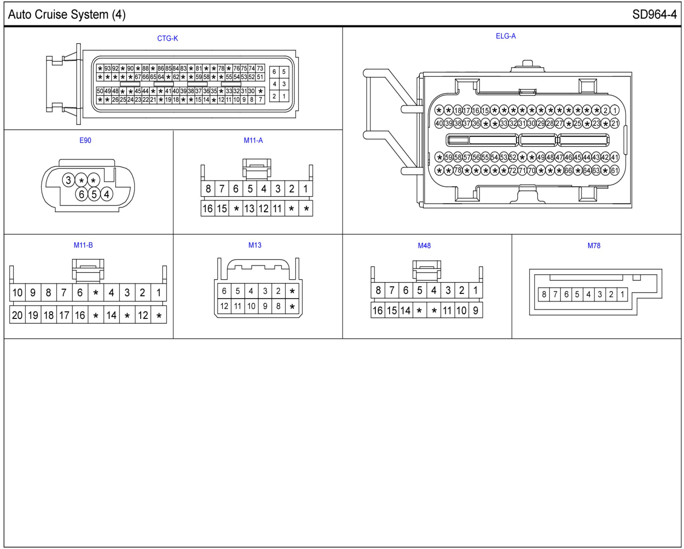 Auto Cruise System Connector Pin Outs: