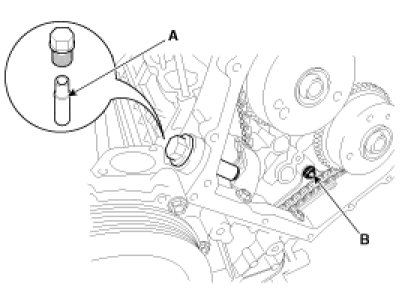 (1) Disconnect the water temperature sensor connector (A) and the CVVT oil control valve connectors (B).
