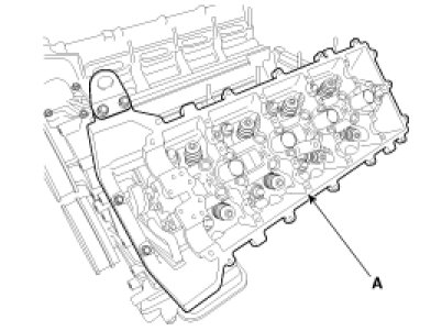22. Remove the cylinder head cover gasket (A) and oil seal (B).