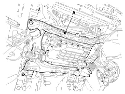 29. Support the sub frame (A) secularly with a floor jack, and then remove the mounting bolts.