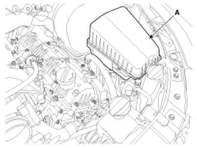 5. Remove the air duct (A), and the air cleaner assembly (B).