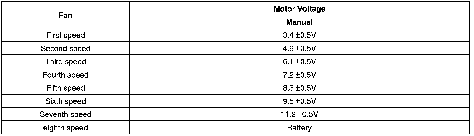 2. Manually operate the control switch and measure the voltage of blower motor between pin 1 and 2.