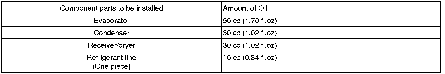 When replacing the system component parts, supply the following amount of oil to the component parts to be installed.