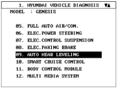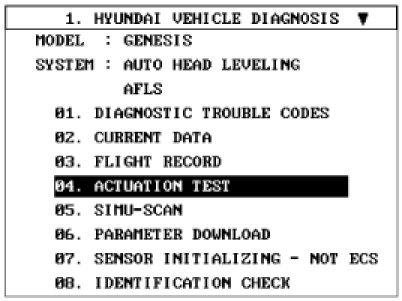 1. Select "AFLS" menu after selecting "GENESIS" of car lists.