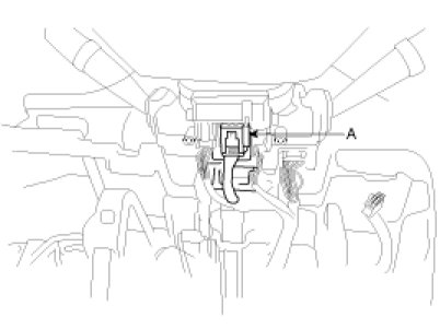 2. Remove the steering column upper and lower shrouds (A) after removing 3 screws and connector.
