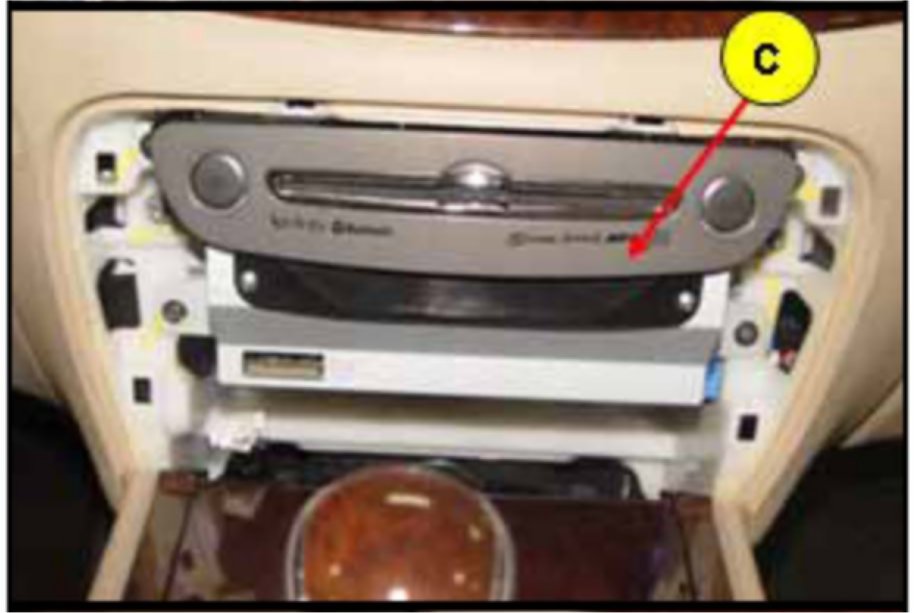 5. Pull out the audio assembly (C) from the crash pad without disconnecting any wiring connectors.