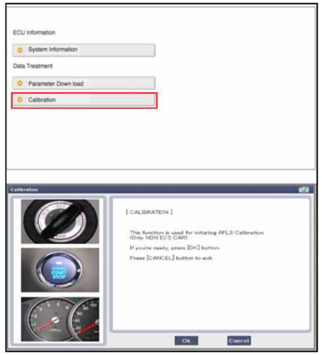 11. Using GDS, download the parameter into the new AFLS ECU according to the procedure below.