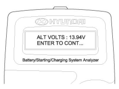 2. ENTER button is pressed, the tester displays the actual voltage of alternator.