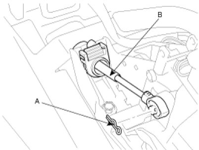 5. Take off the clip (A) and remove the shift cable assembly (B).