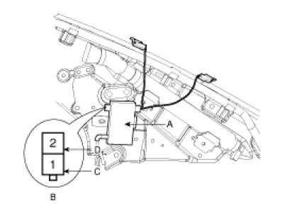 1. Remove the right side rear pillar trim. Then disconnect the 2P power connector from the glass antenna amp (A).