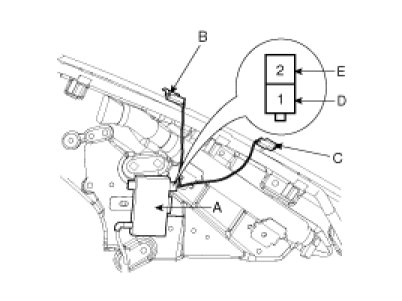 3. Disconnect the 2P connector of radio wiring from the glass antenna amp (A).