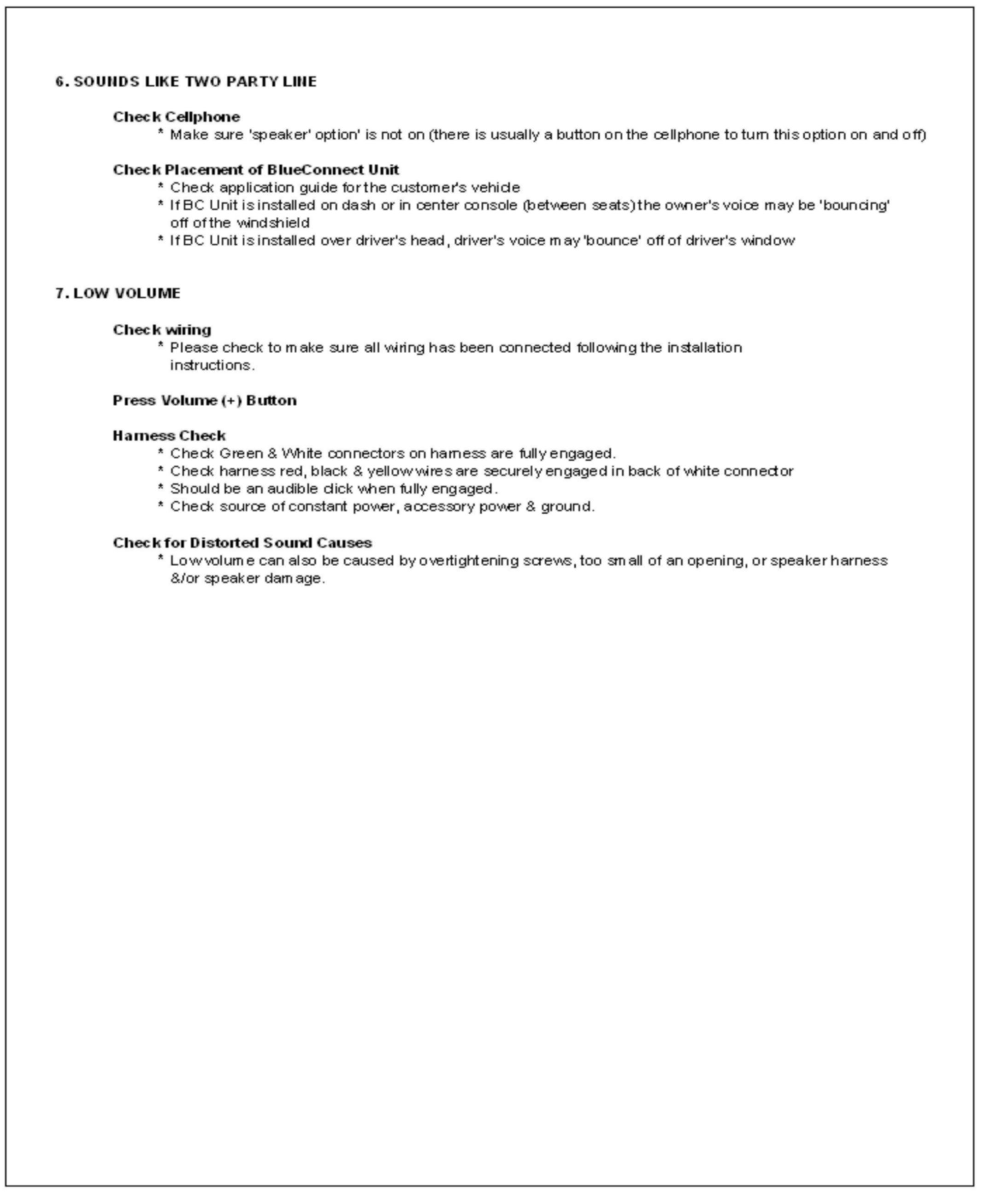 1. Consult the customer and obtain the exact nature of the problem (e.g. completely inoperative, sound quality is poor, etc.) and the make & model of their cellular phone.2. Check phone compatibility at www.jciblueconnect.com or by calling 1-888-528-7930. If the phone is not listed as compatible, advise the customer that their phone is not compatible.