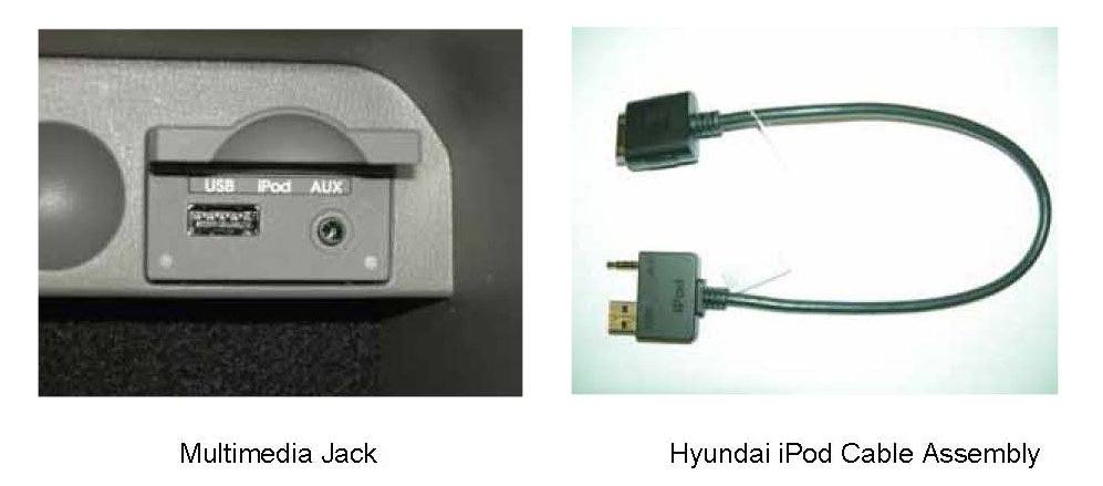 Hyundai Motor America cannot guarantee proper operation using any other means of connection to the multimedia jack (USB/iPod/AUX Jack).