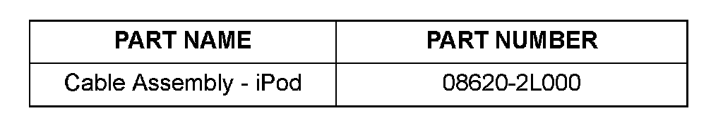 To ensure correct display and all features and functions are available when listening to an iPod unit, a Hyundai iPod adapter cable is required. This cable can be ordered through your facing PDC using part number 08620-2L000.
