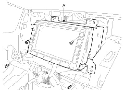 7. Remove the mounting screws then remove the audio unit (A).