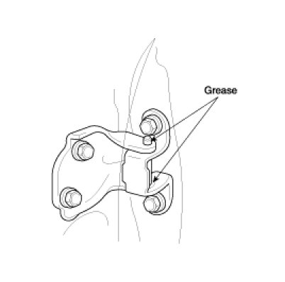 4. Grease the pivot portions of the hinges indicated by the arrows.