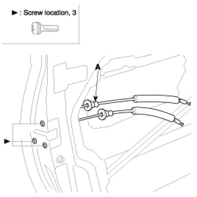 5. After loose the latch mounting bolts, remove the front door latch (A).