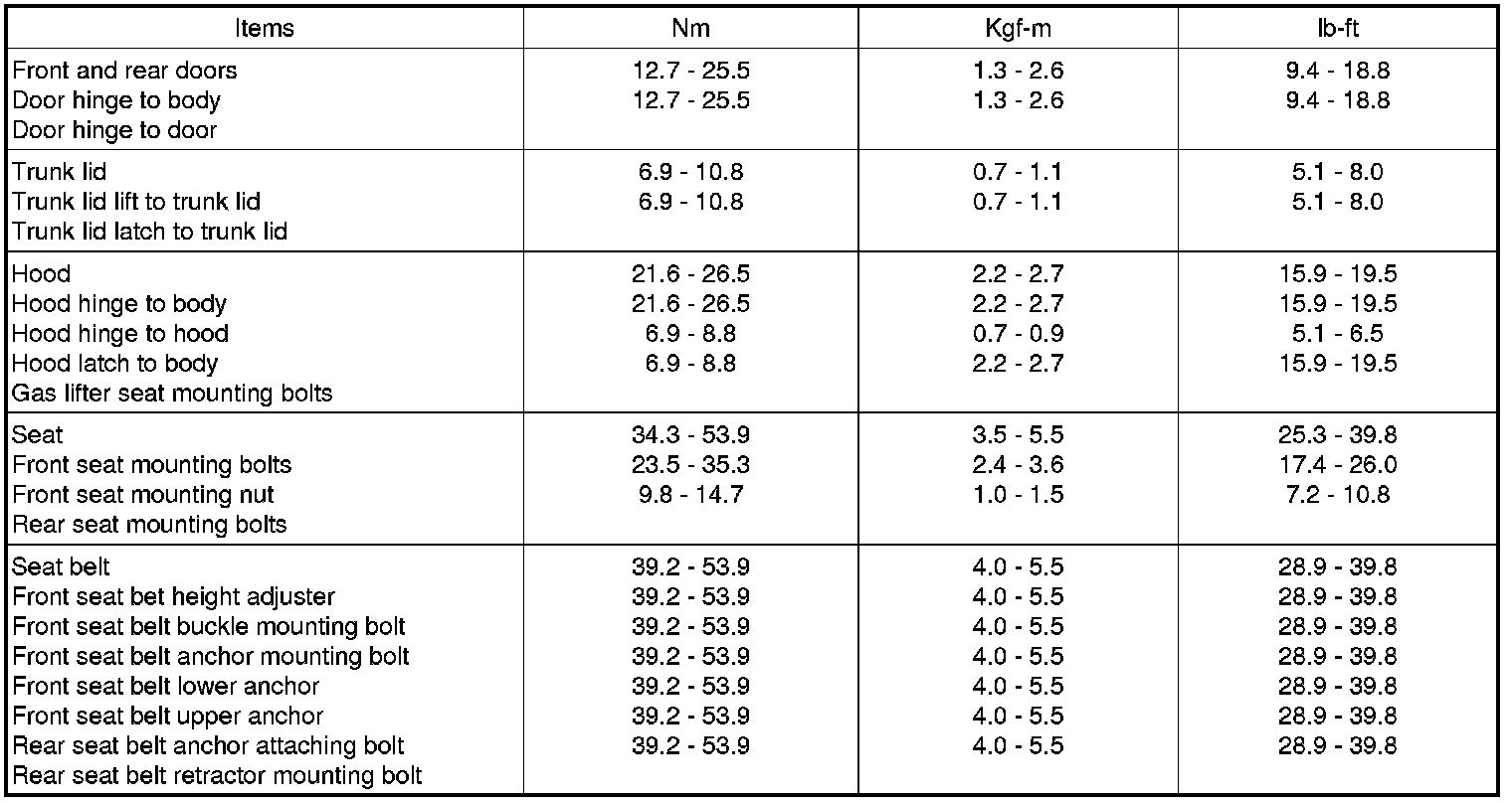 Tightening Torques